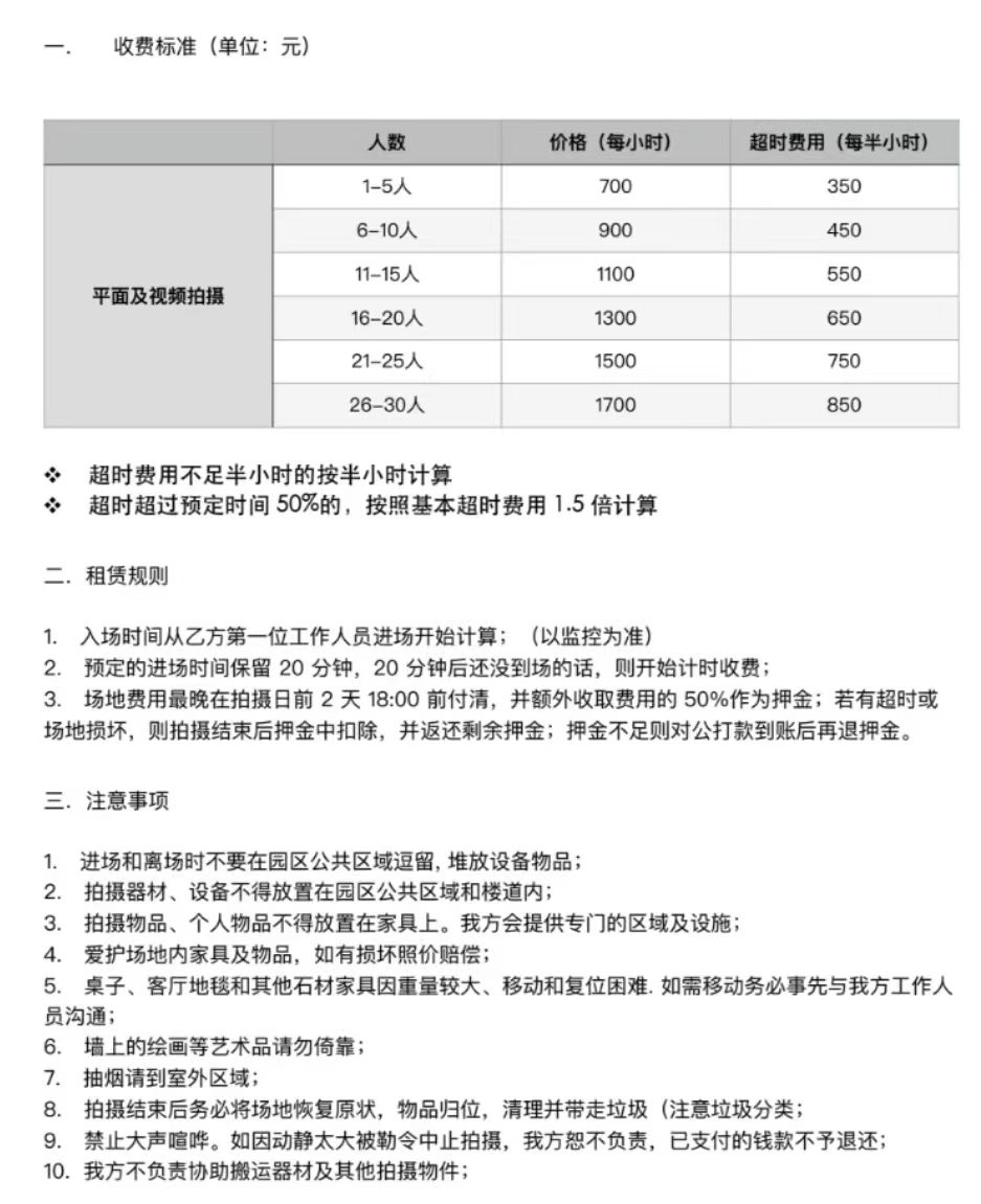 2. 拍摄器材、设备不得放置在园区公共区域和楼道内;