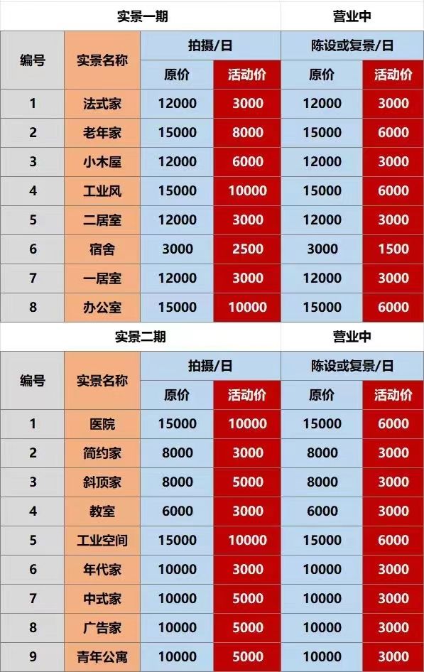 使用时间:从开门进场至恢复原貌撤场16小时,景超时1000/小时;