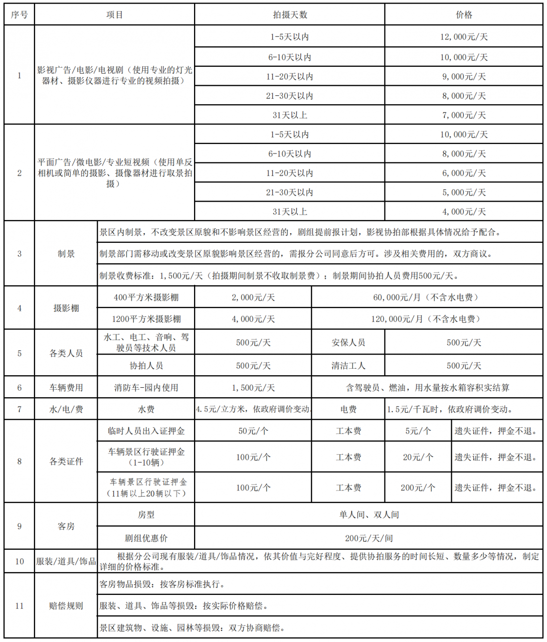 ·拍摄结束,验收场地后退还押金