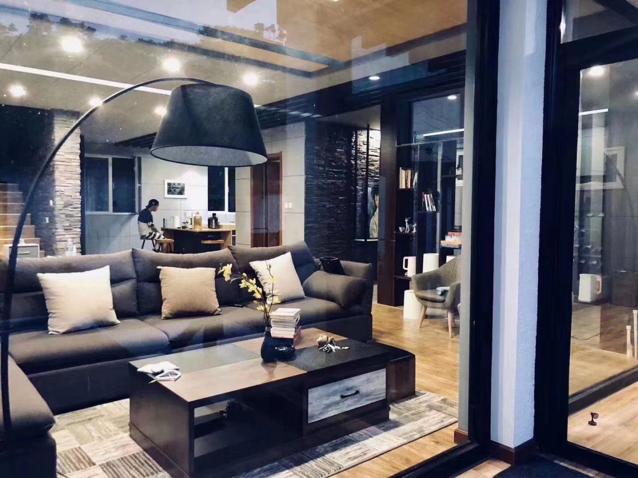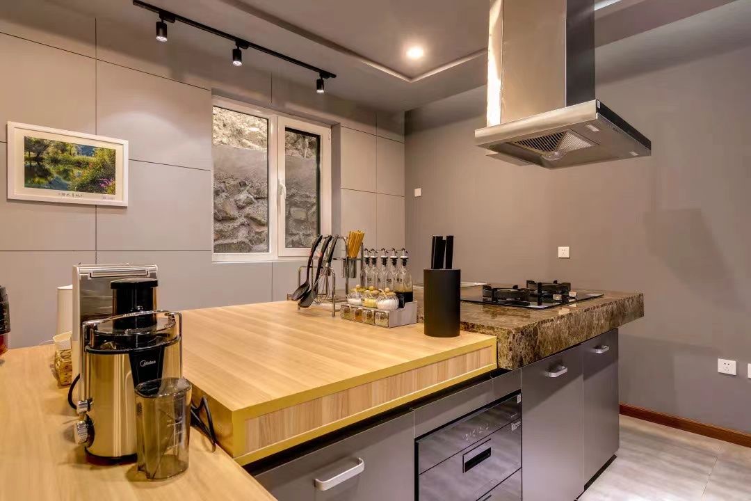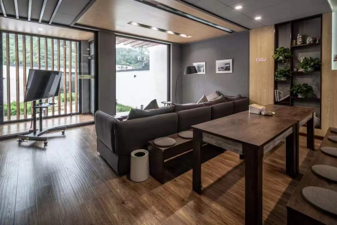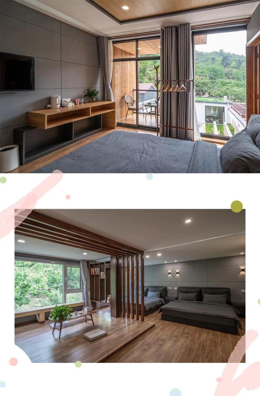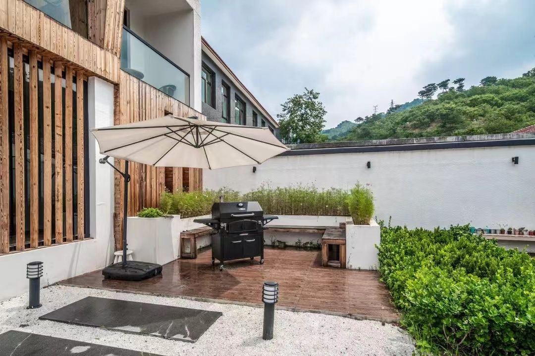 院落面积300平米,门厅设一茶室,一层客厅设有开放式厨房,大长桌,超长沙发,baby椅,活动空间充裕,动静皆宜,房间内有三个卧室,一个大开间,道具齐全,有独立阳台,露台可观景。风格独特,精心的设计,环境优雅,得到很多拍摄租的青睐。