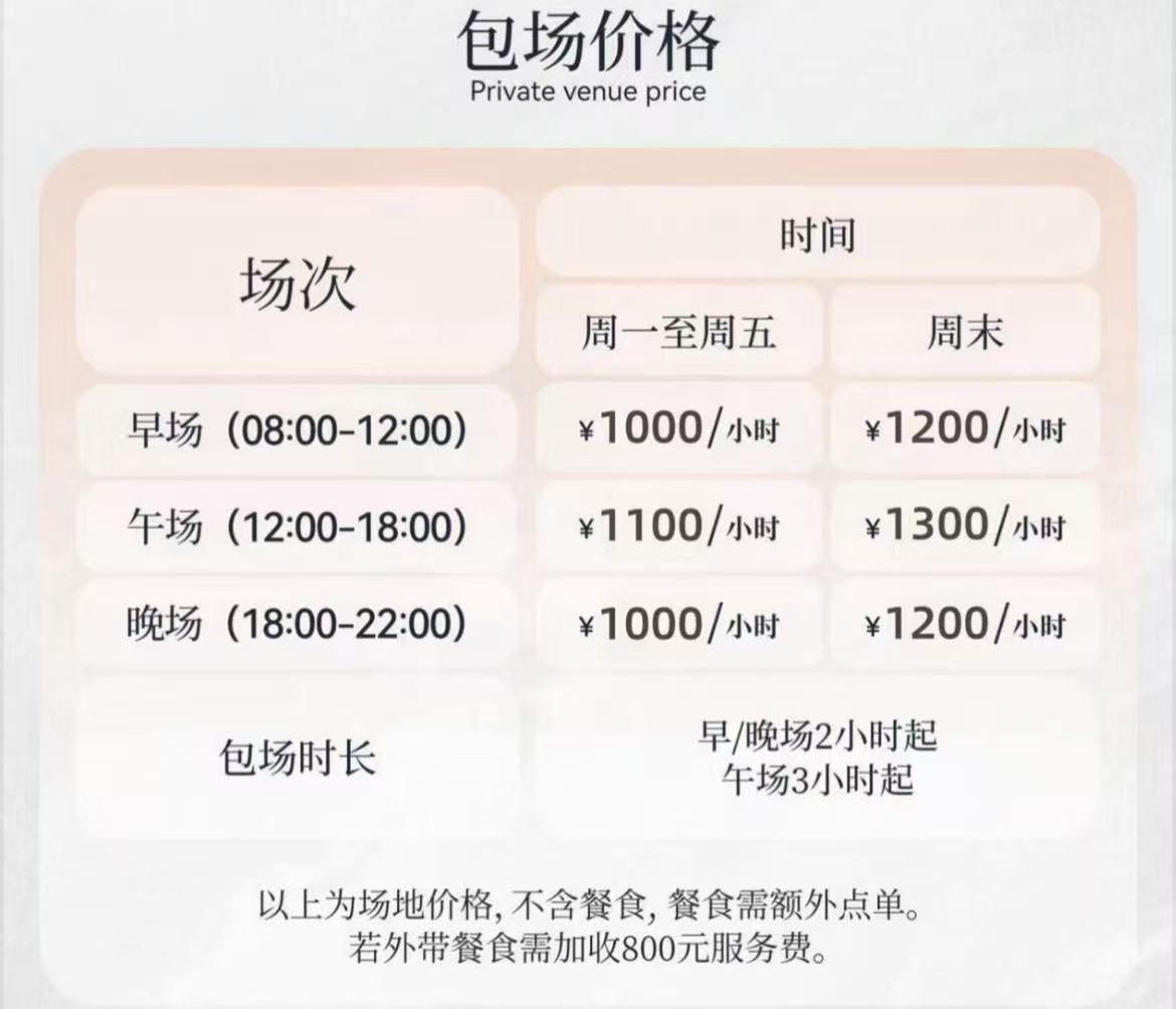·预订后不可取消、改期或延期请提前沟通,根据场地档期调整;
