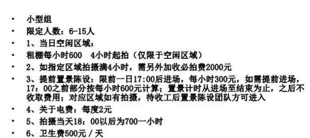 · 拍摄结束 验收场地后退还押金